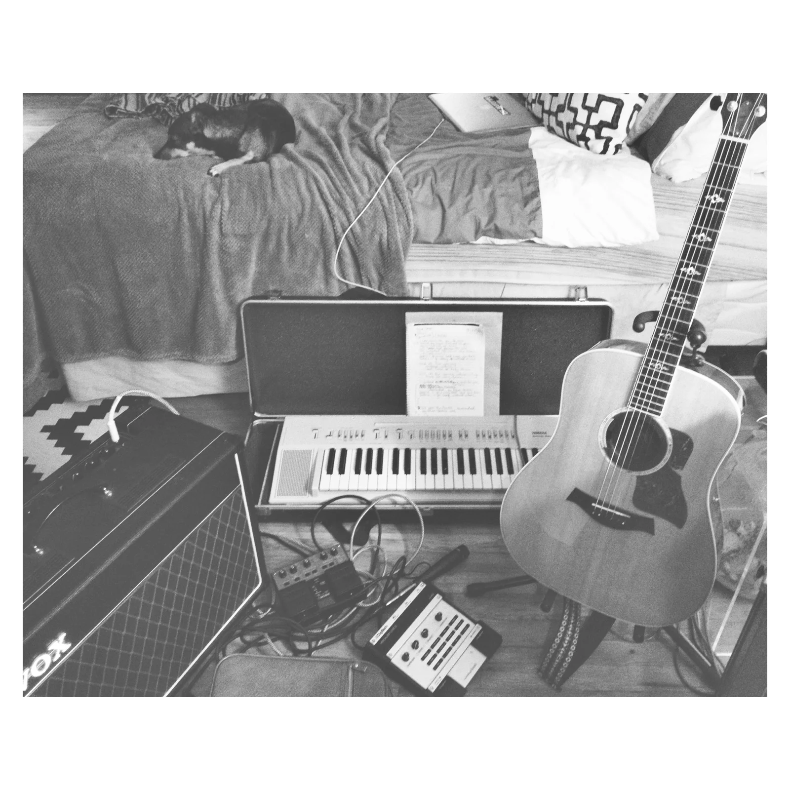 Heading into the studio next week which basically means, I've been spending my nights and any free weekends, finally putting all my songs together. I have a tendency to write in parts - a guitar riff here, a chorus there, a keyboard melody...and I record them onto my phone, to tape, etc. Before I head into the studio, I lay out all of my essential writing tools guitar, pedals, keyboard, mic, in a small space on the floor and dive into the process. Now that I think about it, I have never written a song not sitting on the floor. (I'm not entirely sure what that means), but I've got my methods locked and it's what has worked for me.